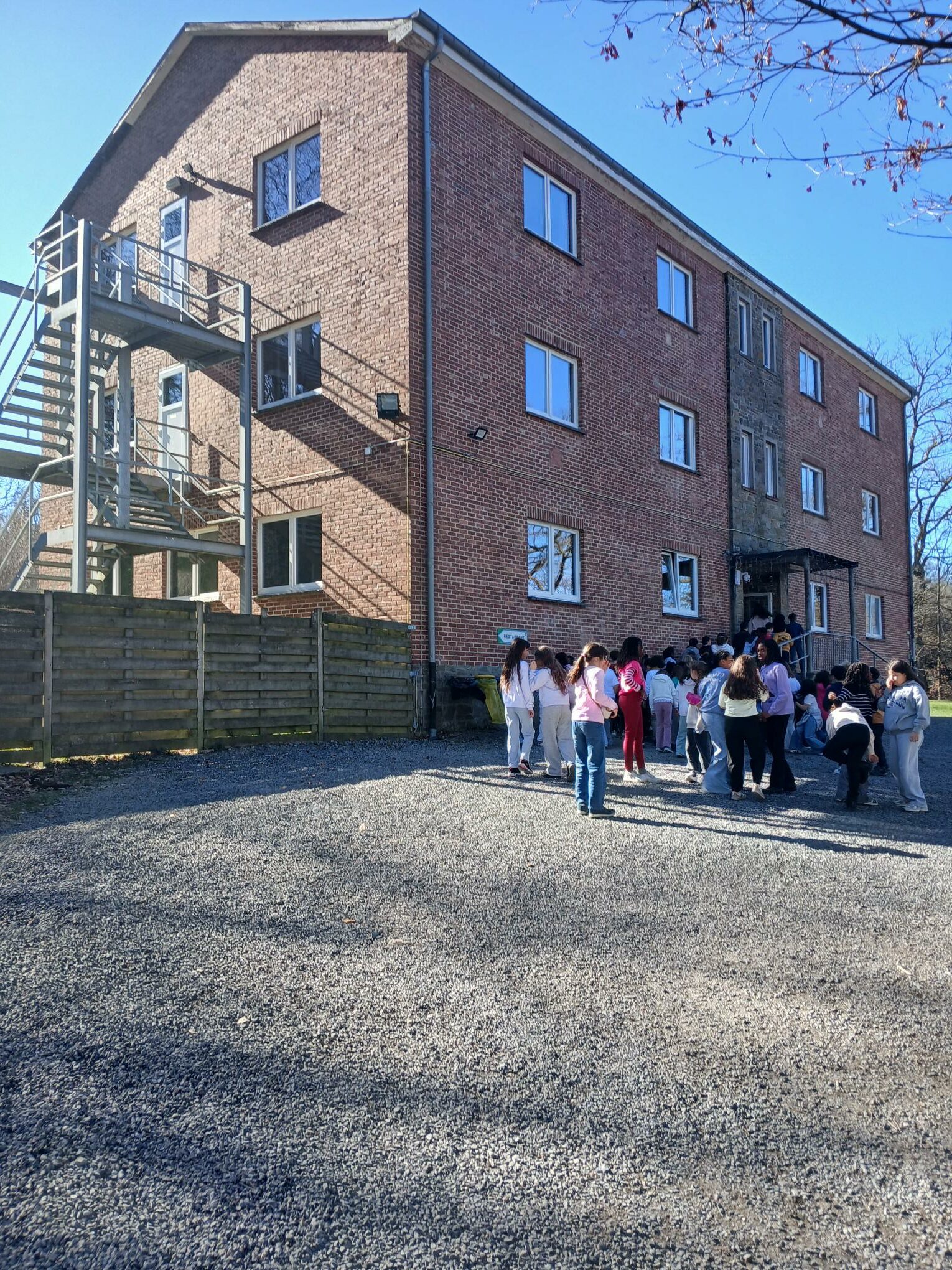 A notre arrivée, nous avons découvert nos chambres avec enthousiasme. Puis nous sommes allés manger les pâtes bolognaises qui nous attendaient au restaurant. Ensuite, le premier groupe a eu l’animation forestière et le deuxième un moment de détente foot ou basket, bac à sable ou découverte des alentours.